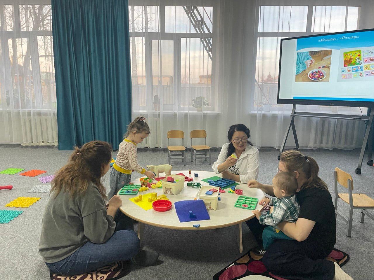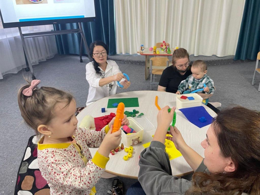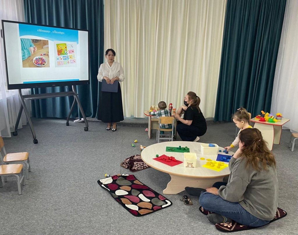 Кеңес беру орталығының жұмыс жоспарына сәйкес әдіскерлер А.С. Қапасова мен У.А. Сабекова «Кішкентай балалардың сөйлеуін дамытудағы саусақ гимнастикасының рөлі» тақырыбында шеберлік сабағын өткізді.