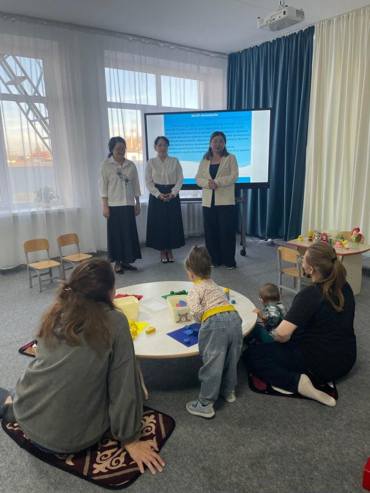 Орталық жетекшісінің құттықтау сөзінен кейін Ф.С. Жұманова, ата-аналарға тақырып бойынша слайд көрсетілімі, ойындар, жаттығулар көрсетілді.