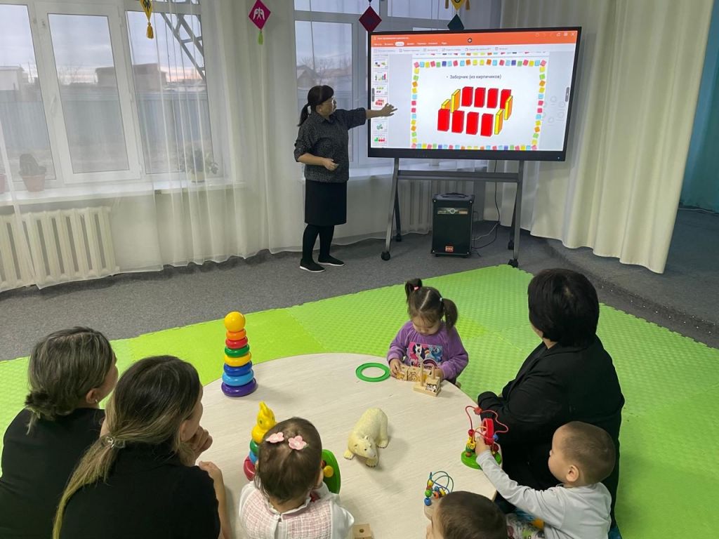 «Балаларға арналған құрастыру» презентациясы көрсетіліп, «Сенсорлық қабілеттерін дамытуға арналған ойындар» ойыны өткізілді.